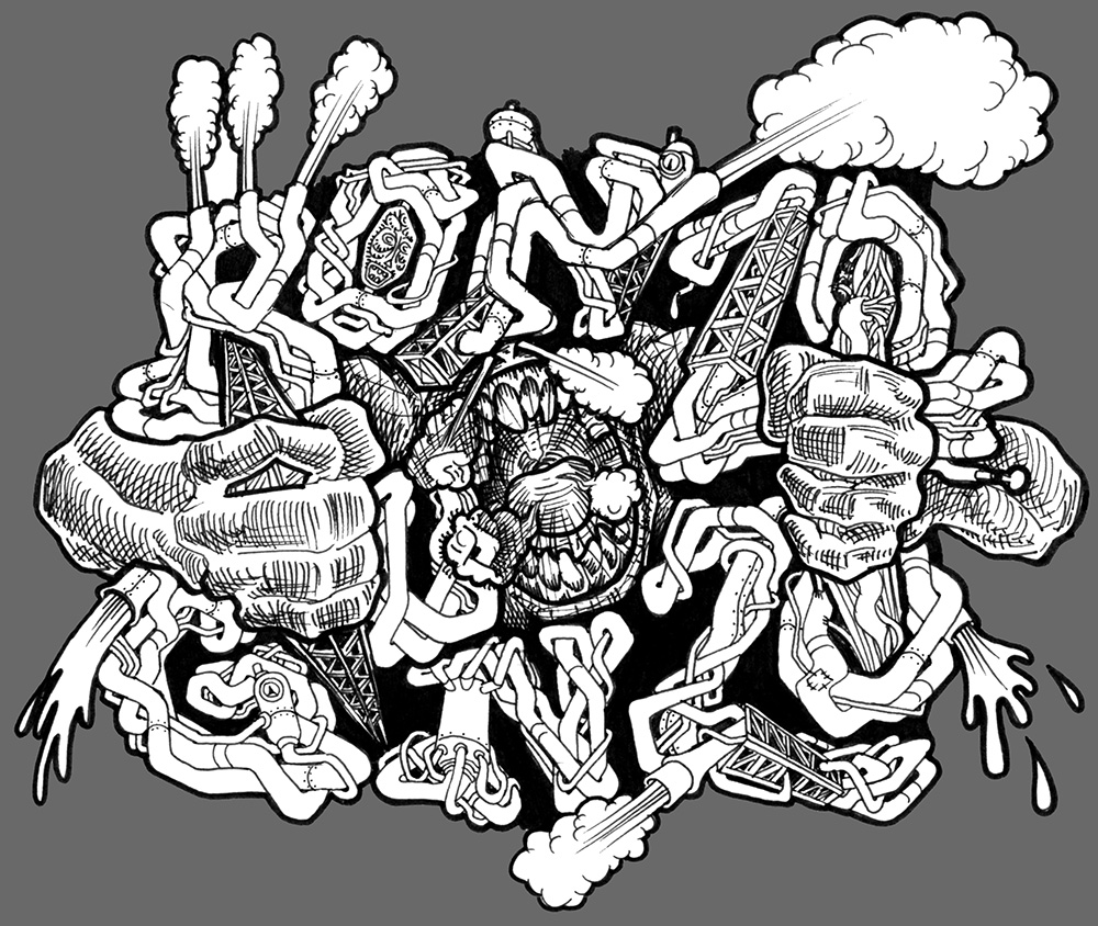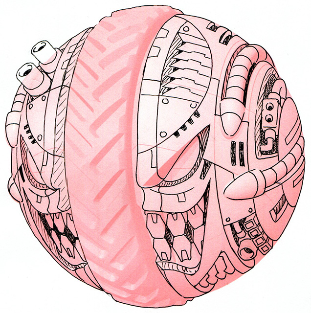「球に沿った形」が全然把握できず、キレイに描けないので、結局3Dで下絵を。